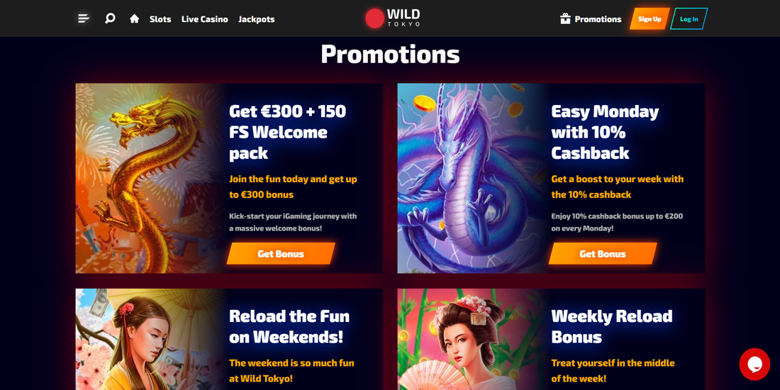 Wild Tokyo Саѕіnо welcome bonus is a package of up to €300 + 150 Free Spins.