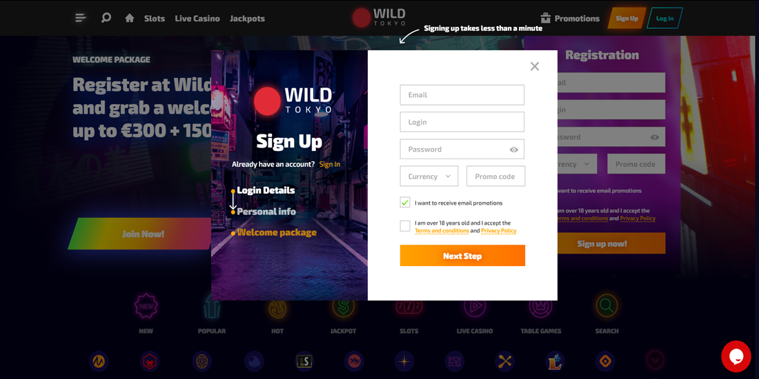 Wild Tokyo’s signup process is as straightforward and quick as it is at any other top-rated online casino. You only need to submit your personal information, such as your name, email address, and physical address. After that, simply make your first payment of at least $20 and you’re ready to begin playing your favorite games and spinning the reels for those long-awaited wins.
