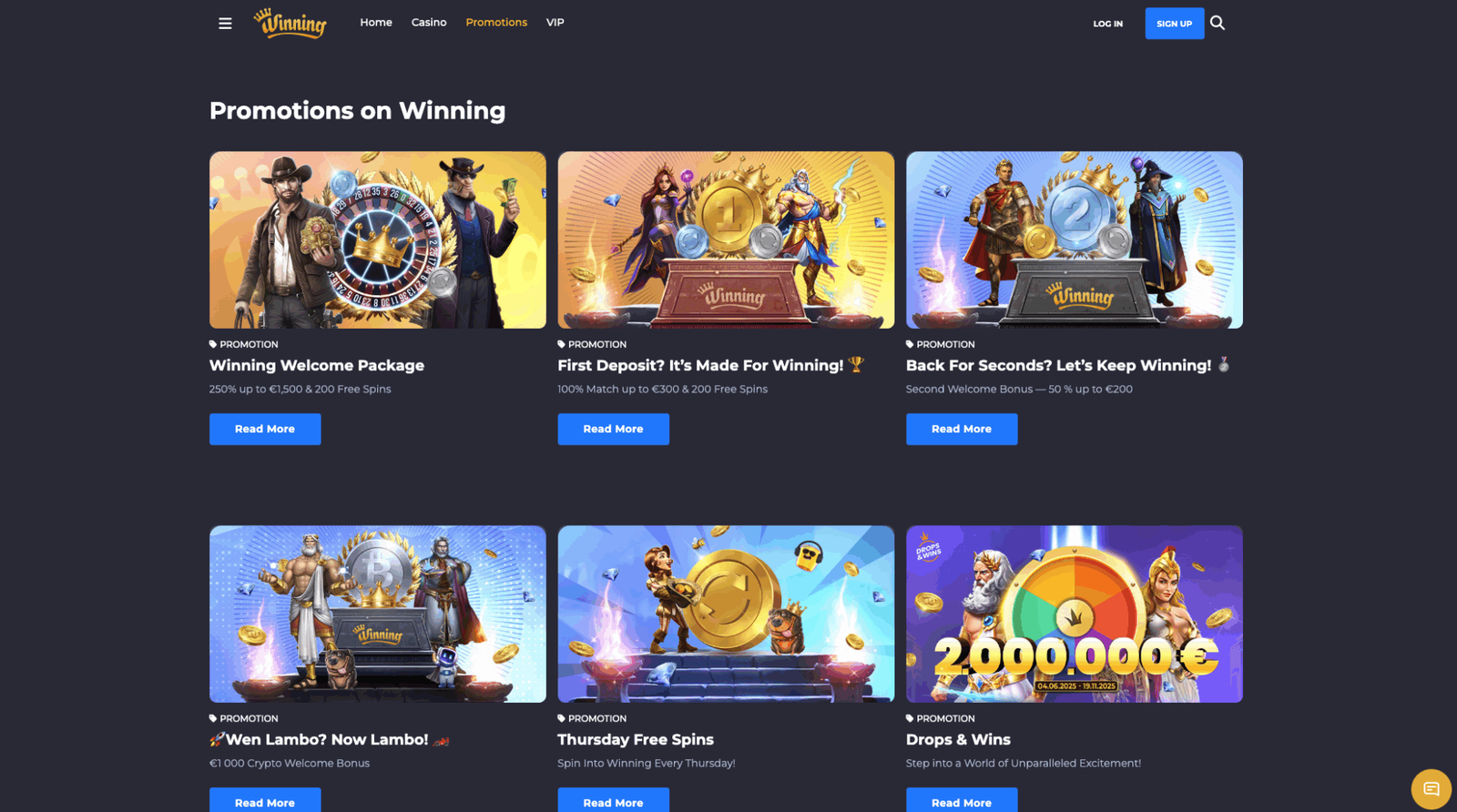 Newcomers at Winning.io Casino are welcomed with a generous 100% deposit bonus up to €300–€310, along with 200 free spins—typically valued at around €0.10 each. To activate, players need to deposit at least €20, and those depositing €50+ using the promo code WinnersChoice snag the spins bonus too.