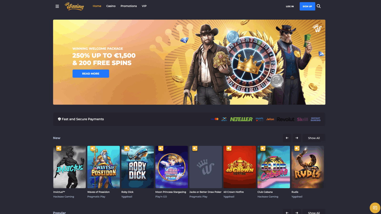 The Website Layout & Design of Winning.io Casino