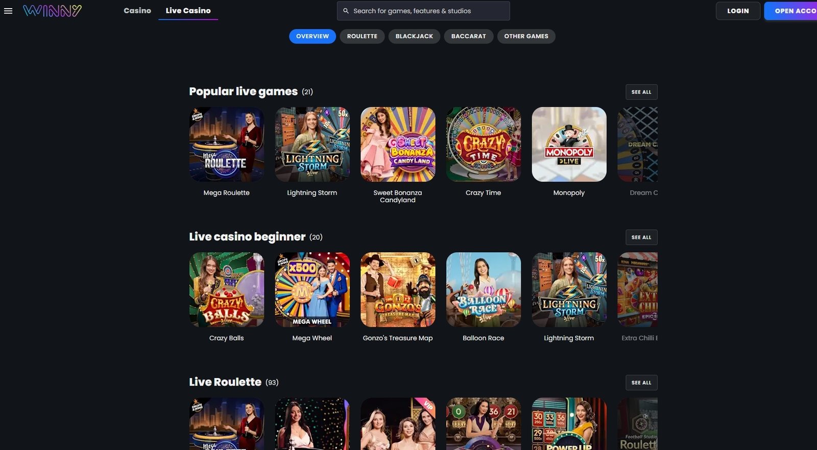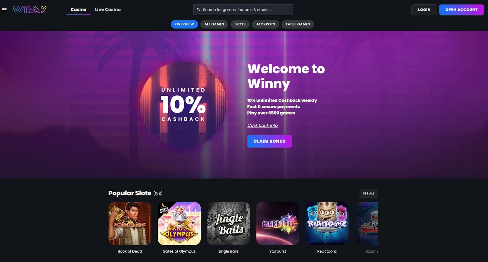 This approach reflects Winny Casino’s focus on providing long-term value and a transparent gaming experience. While the absence of a traditional welcome bonus may be surprising, the simplicity and ongoing benefits of the cashback program make it a standout feature.