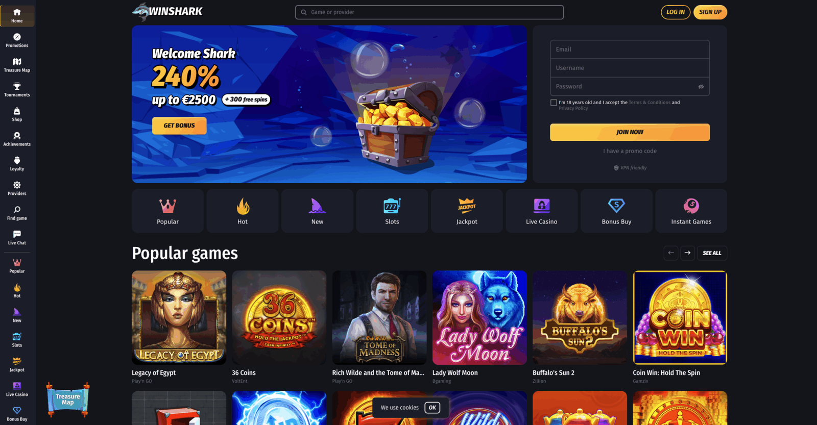 In short, WinShark Casino’s software provider lineup guarantees a diverse, premium-quality experience, catering to both slot enthusiasts and live-casino purists.