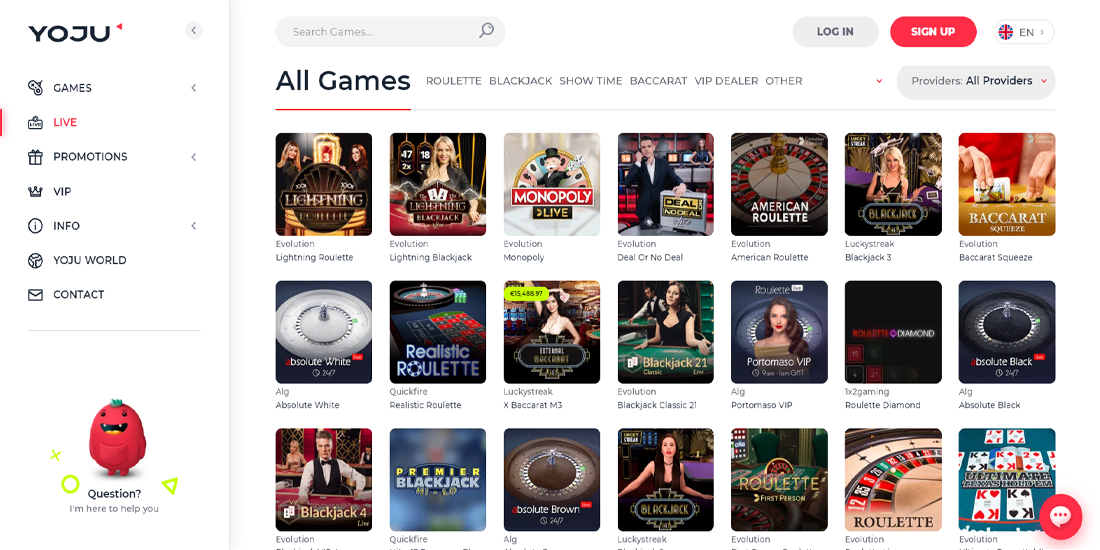 Another tendency that has been gaining lots of popularity in the past several years is gambling live. There are many reasons for this phenomenon. Players have now realised how much more beneficial, fun and entertaining this gambling activity actually is! Well, at Yoju Casino you will be able to gamble on over 200 live dealer games, including different variations of Blackjack, Roulette, Poker, Baccarat, and some other thrilling live game shows.