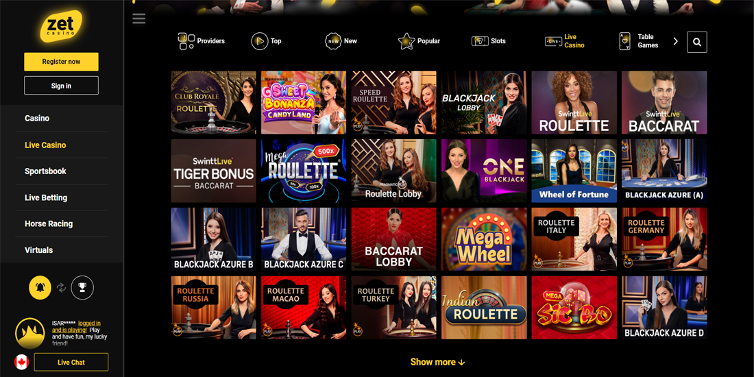 The two industry leaders in charge of Zet Casino’s Live Casino section are Evolution Gaming and Pragmatic Play. There are Live Roulette, Blackjack, Baccarat, and Poker games available, as well as unique titles such as Crazy Time, Monopoly Live, and others.