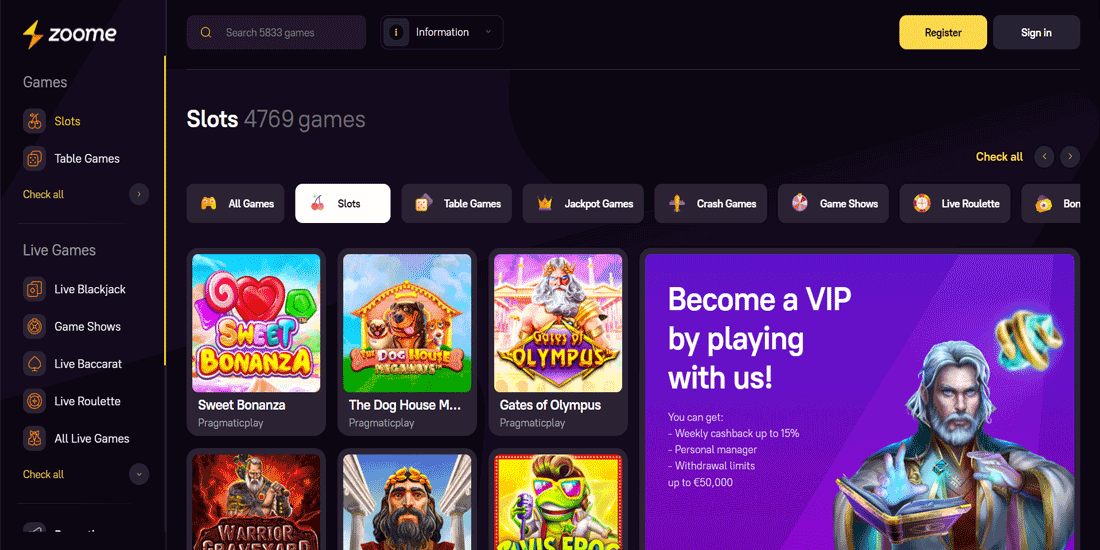 When it comes to game variety, Zoome Casino truly shines. With a library ranging from over 5,000 to 9,500 titles sourced from 80–100 renowned providers—like NetEnt, Pragmatic Play, Yggdrasil, BetSoft, Evolution Gaming, and more—Zoome Casino caters to every player’s taste. Whether you’re a fan of classic fruit slots or high-volatility video slots like Book of Dead, Gates of Olympus, and Razor Shark, Zoome Casino delivers top-tier content.